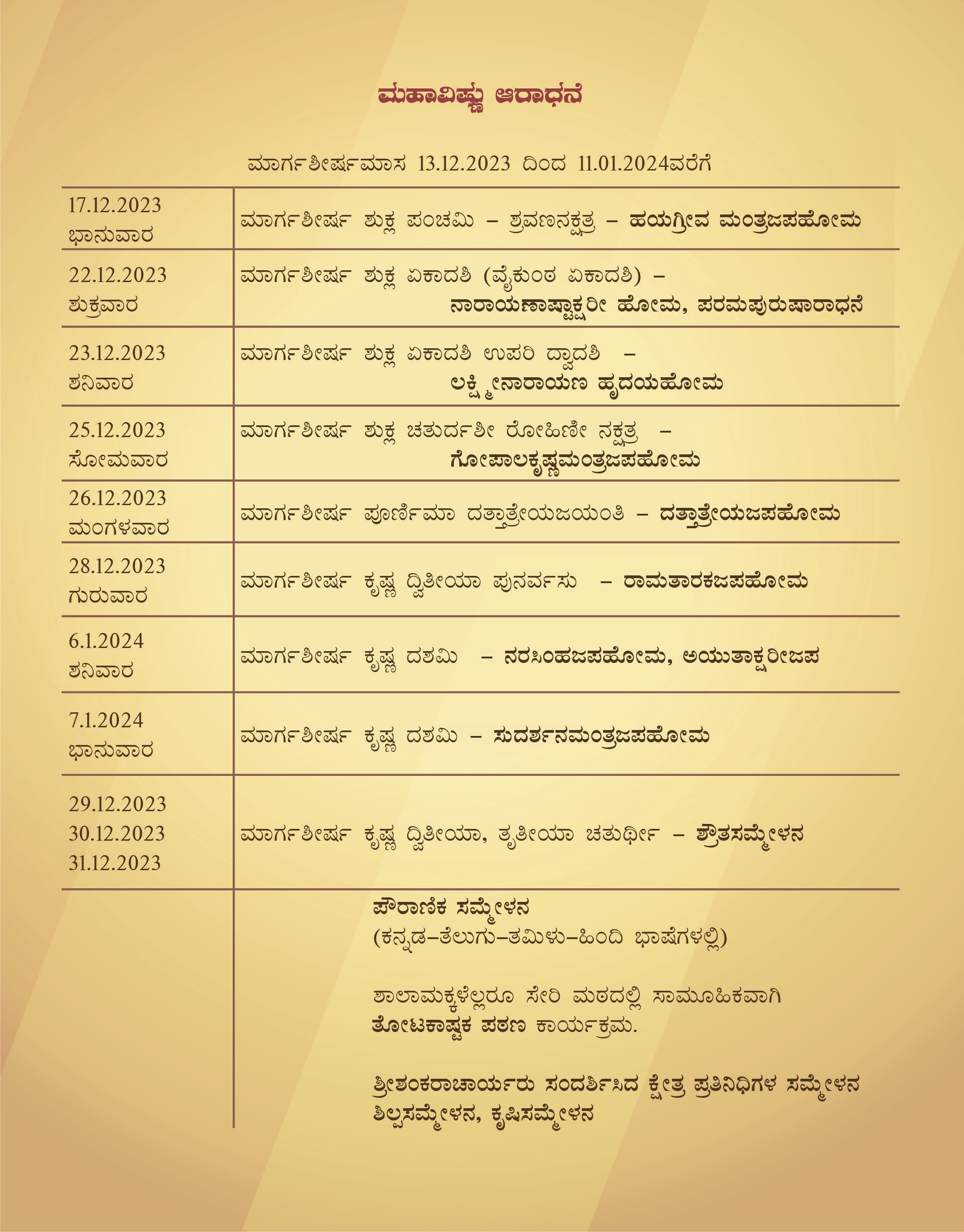 Sringeri Calendar 2024 India